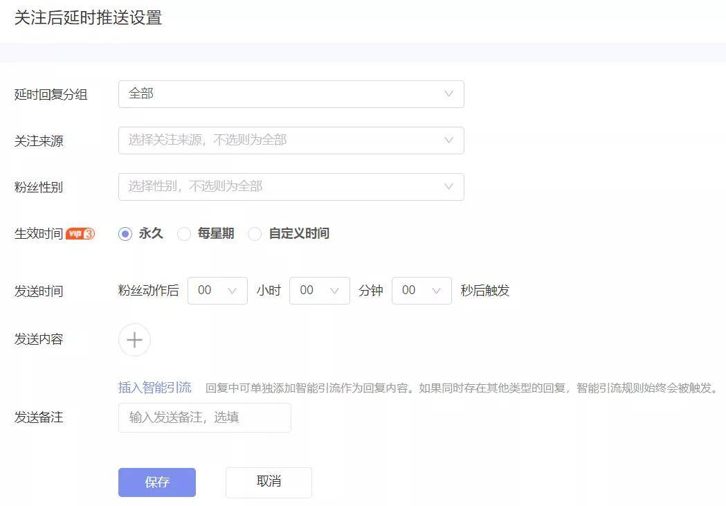 粉絲關注后不會立馬收到消息,而是在我們設置的延時時間收到消息。(可設置0~48小時)